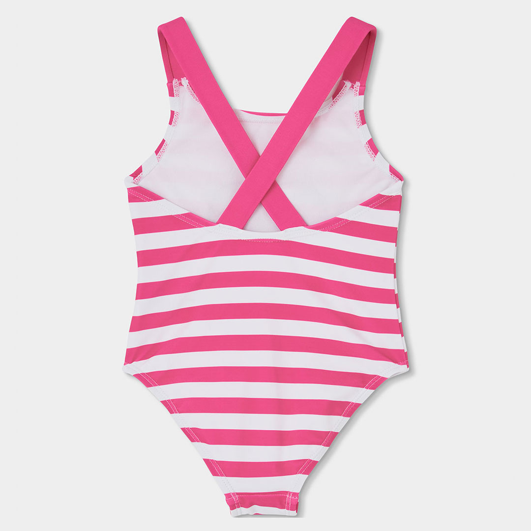 Bañador Boboli para niña de rayas rosa y blanco con manzana