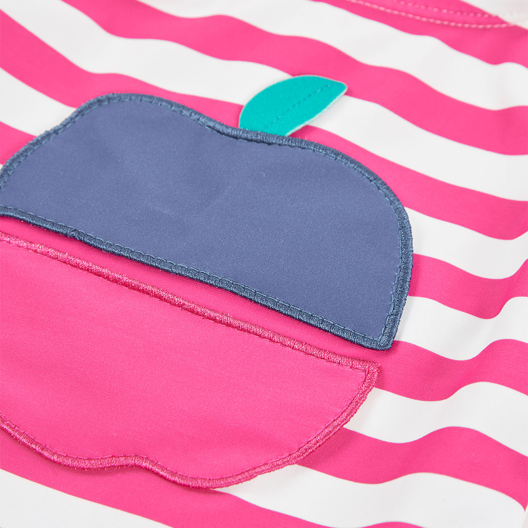 Bañador para niña de rayas rosa y blanco con detalle de manzana 🍎🌊
