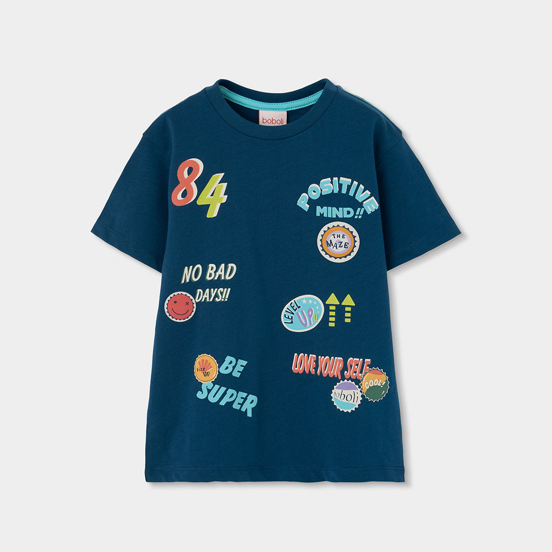 Camiseta Boboli de punto de algodón azul marino para niño