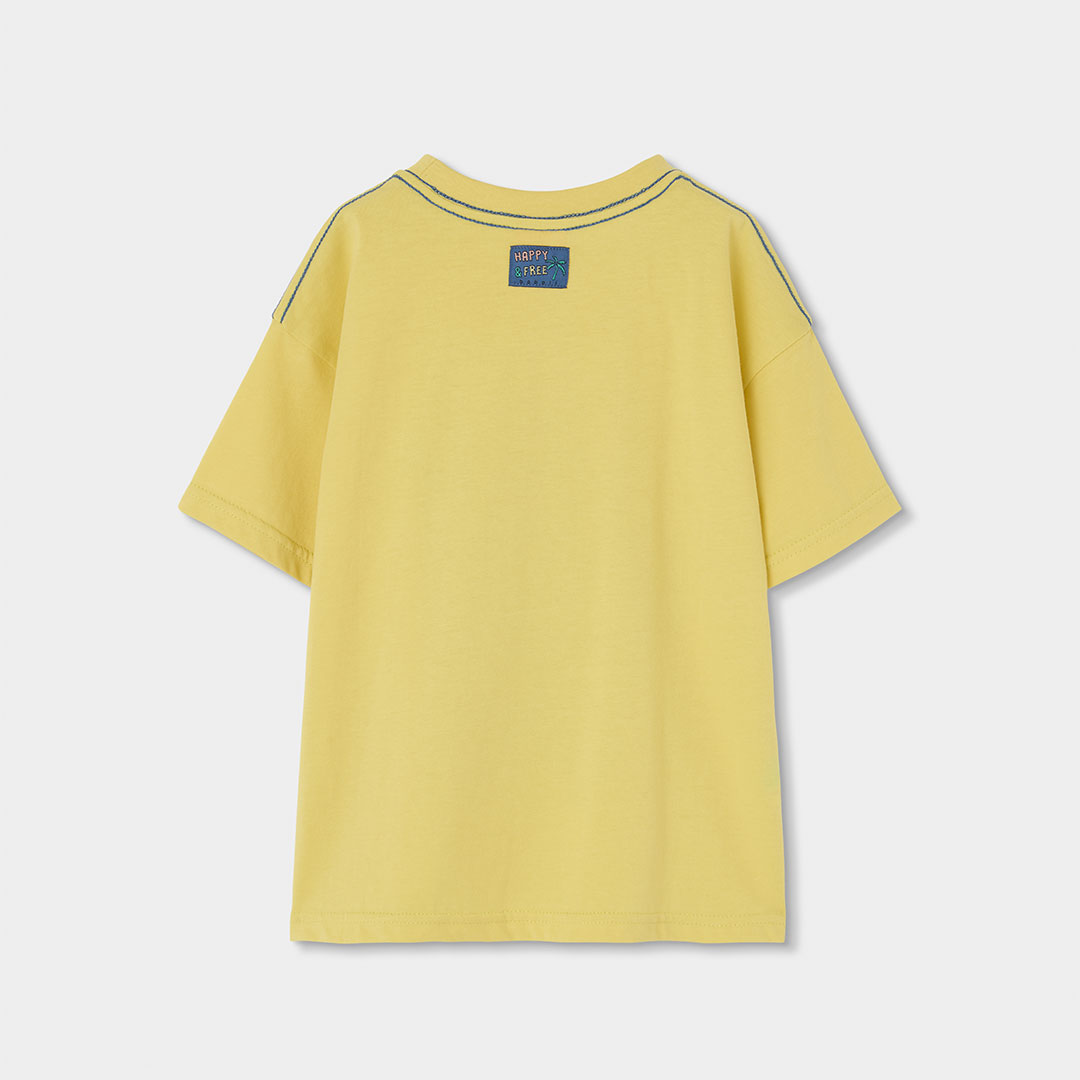 La camiseta de manga corta para niño en algodón de punto limón es una prenda fresca, cómoda y con estilo, perfecta para los días de primavera y verano. Su tejido suave y transpirable garantiza confort durante todo el día, ideal para el uso diario de los más pequeños.