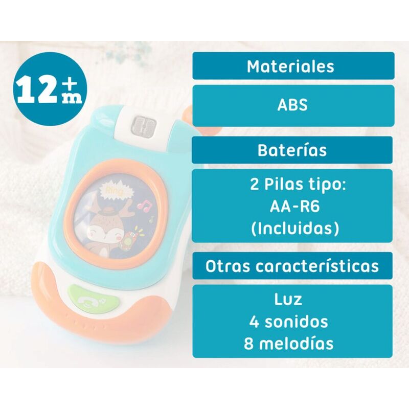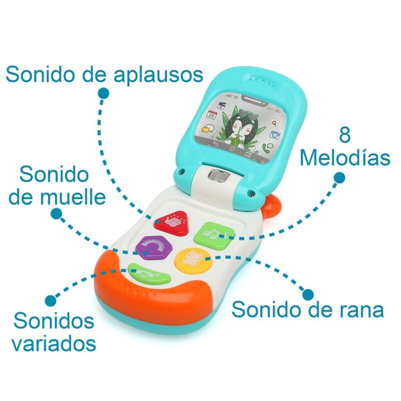 Con este juguete tan original los peques ya podrán llamar como mamá y papá. No se separará de él. Es un juguete perfecto para estimular los sentidos del tacto, el oído y la vista así como despertar su curiosidad. Su forma es como un teléfono de verdad, al tocar las teclas, descubrirá sus melodías y sonidos reales de móvil con cada pulsación. Tiene un tamaño perfecto para que tu bebé lo coja y sujete sin problemas. Es resistente a los golpes y seguro para los más peques.