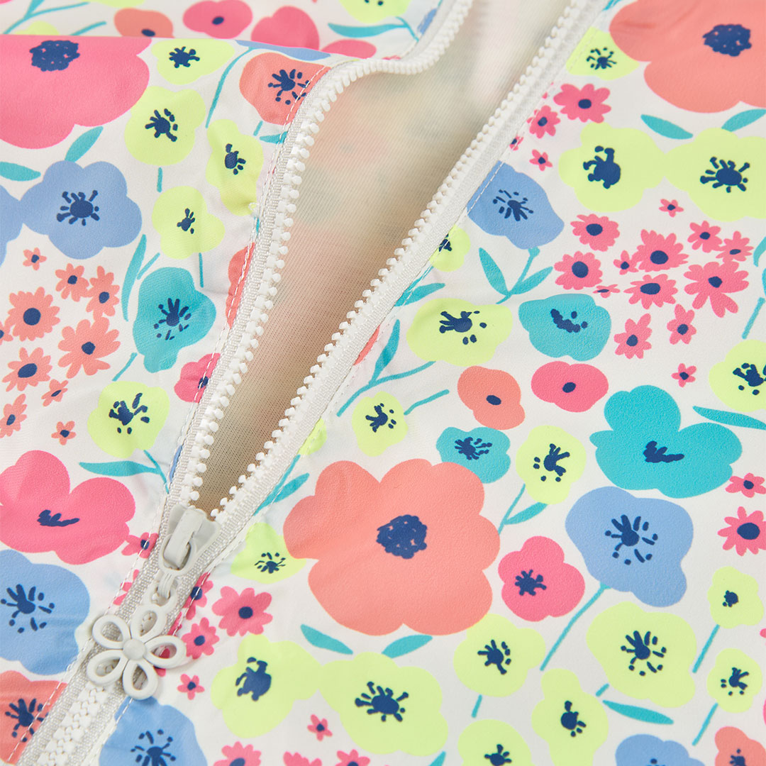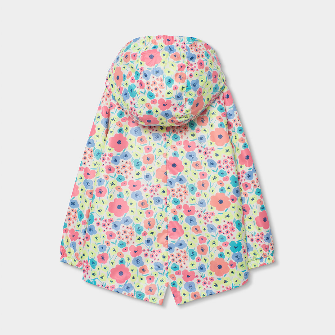 Esta parka para niña de tejido técnico combina estilo, comodidad y funcionalidad, convirtiéndose en una prenda ideal para los días frescos o lluviosos. Su estampado floral multicolor aporta un toque alegre y lleno de vida que ilumina cualquier look infantil.