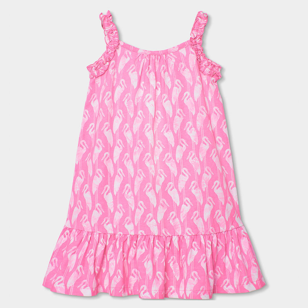 Disponible en tallas desde 3 años hasta 12 años, este vestido es una prenda versátil y fácil de combinar con sandalias, zapatillas o chaquetas ligeras.