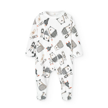 Pelele Boboli de terciopelo crudo con animales para bebé niño