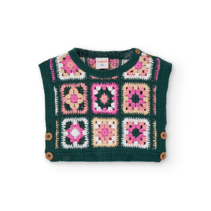 Jersey Boboli de punto blanco para niña con corazones de colores