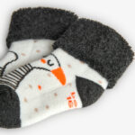 Calcetines de felpa beige para bebé con divertidos diseños de animales y rayas. Cómodos, cálidos y perfectos para los días fríos.