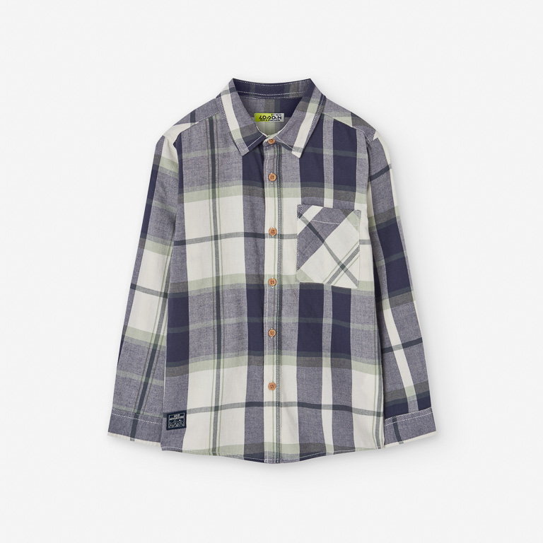 Camisa Losan manga larga a cuadros en tonos azules y verdes para niño – Estilo clásico y confort diario