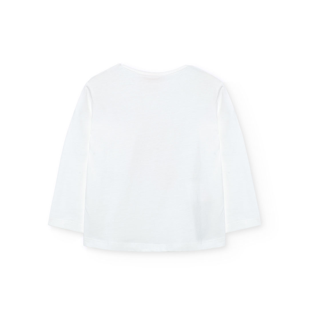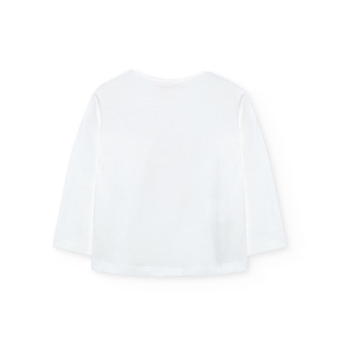 Camiseta blanca para niña en punto suave y transpirable.