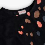 La camiseta de punto para niña en color negro es una prenda imprescindible para aportar un toque moderno y sofisticado al armario infantil. Su elegante estampado abstracto en varios colores convierte cualquier look en un conjunto divertido y contemporáneo, ideal para las niñas que quieren estilo sin renunciar a la comodidad.