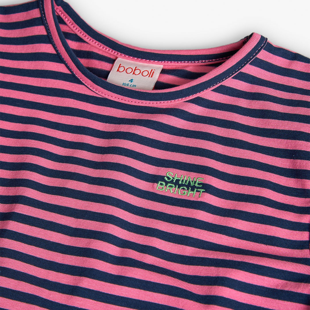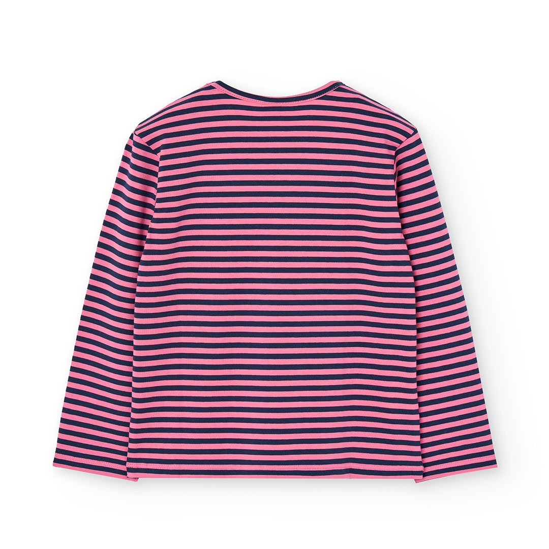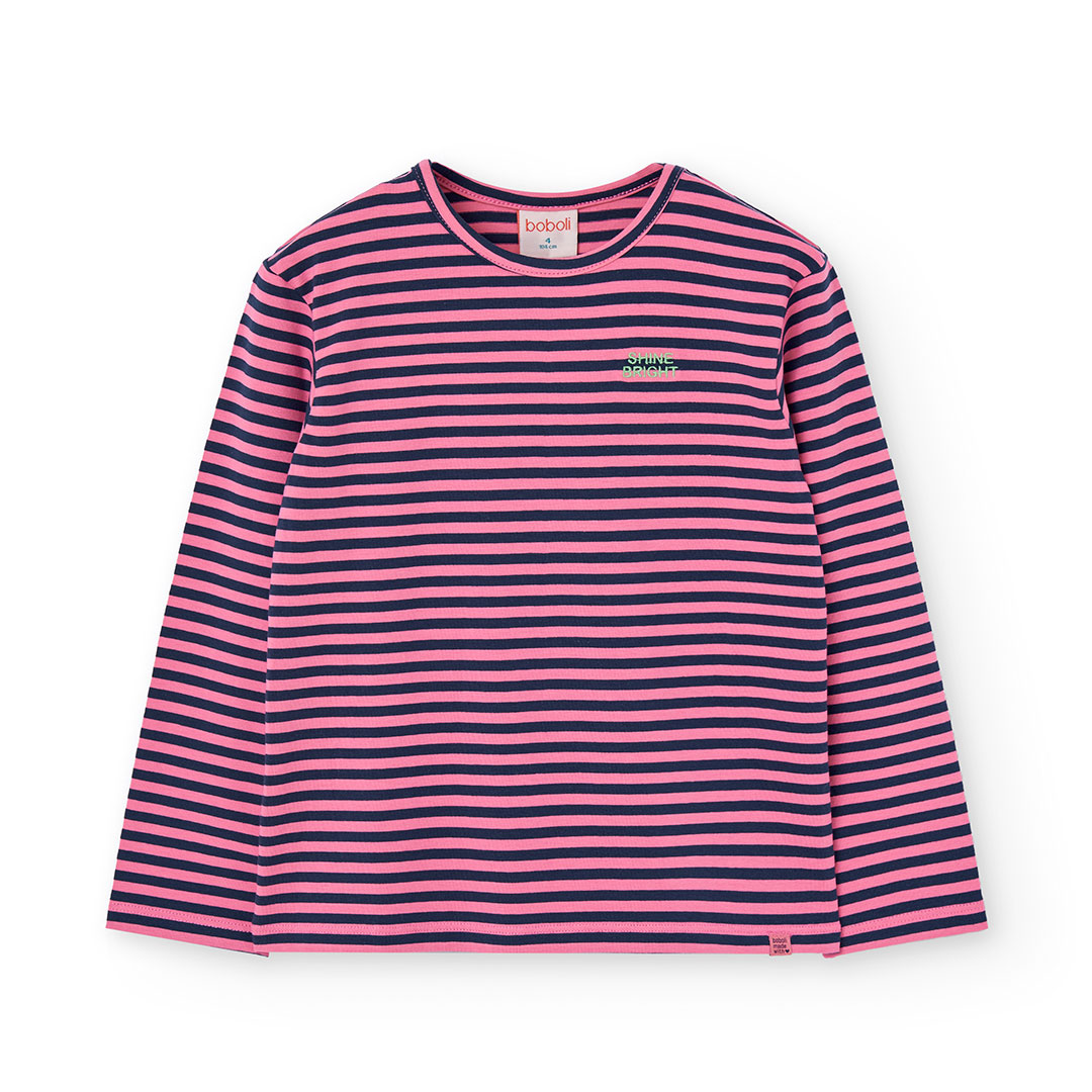 Camiseta de punto a rayas rosa y azul marino para niña