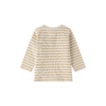Confeccionada en algodón suave y transpirable, esta camiseta de manga larga garantiza confort y libertad de movimiento, cuidando la delicada piel del bebé. Su tono crudo y marrón claro permite combinarla fácilmente con pantalones, petos o leggins, creando conjuntos cómodos y llenos de estilo.