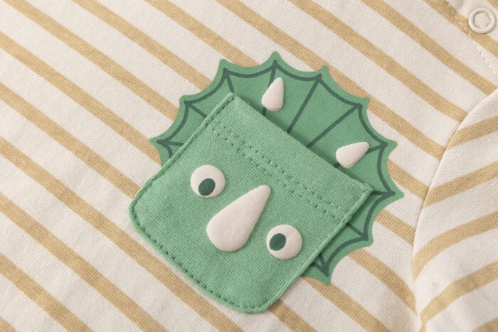 Diseño a rayas con bolsillo y dinosaurio divertido.