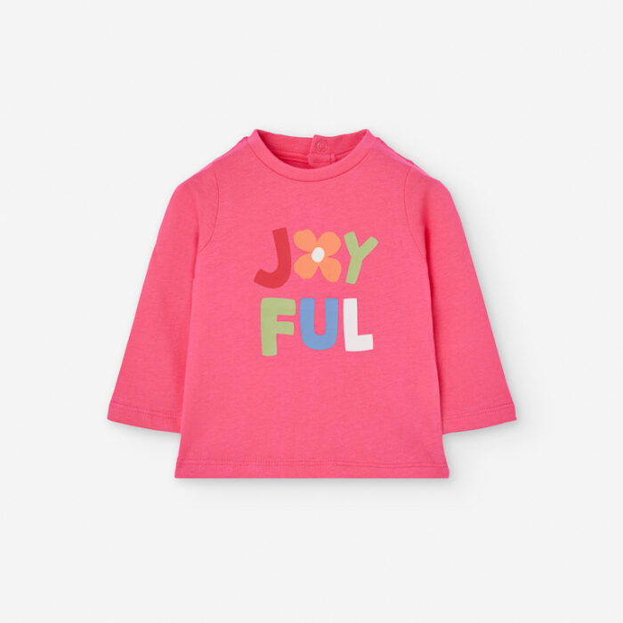La camiseta Losan estampado en fucsia para bebé niña es una prenda alegre, cómoda y con mucho estilo, perfecta para los días de juego o paseo.