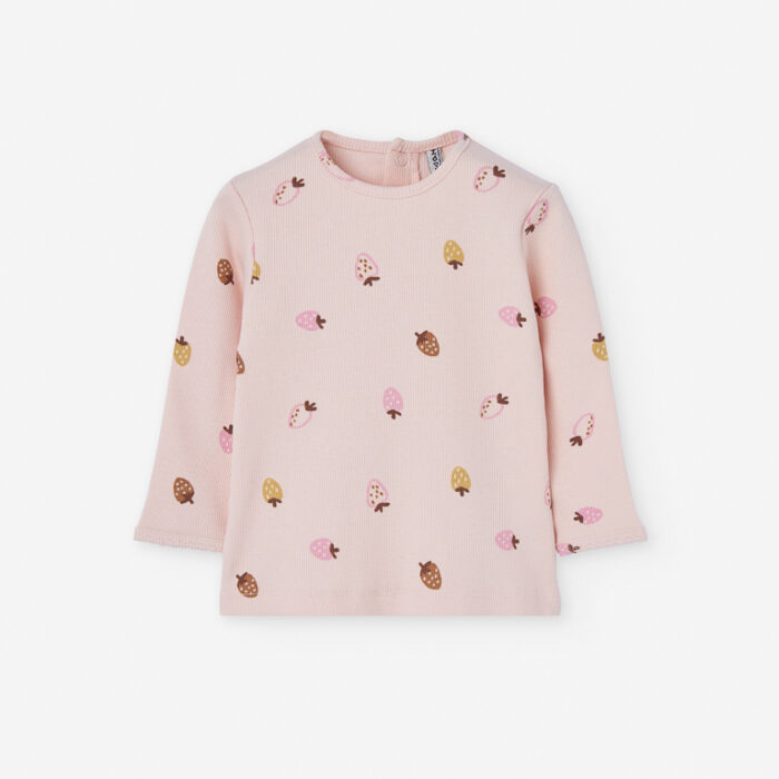 🍓 Camiseta Losan manga larga fresas en rosa para bebé niña