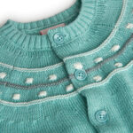 Esta chaqueta de punto en algodón suave de color verde agua para bebé combina estilo y comodidad. Con un estampado de lunares divertido y moderno, aporta un toque encantador a cualquier conjunto. Ideal para mantener a tu pequeño cálido durante las estaciones frías.