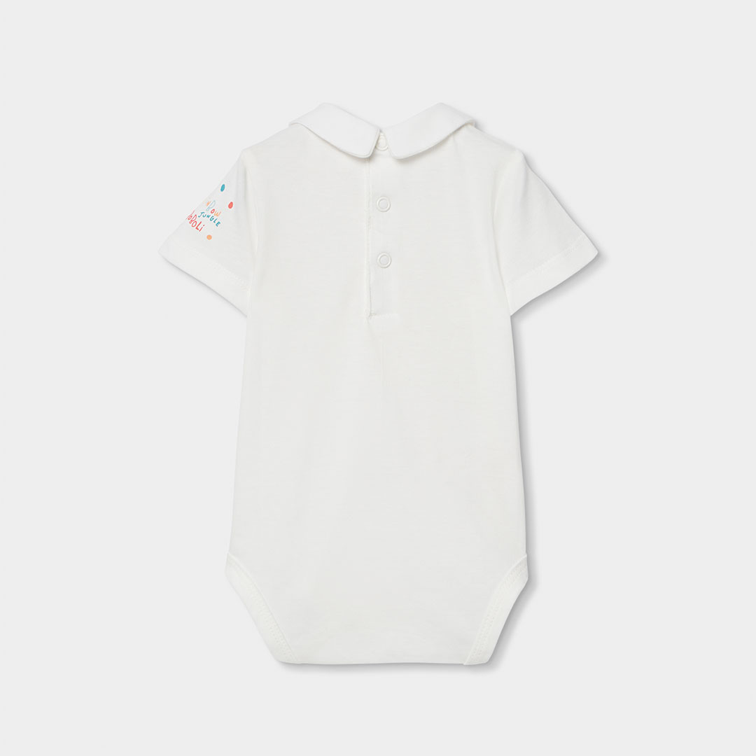 El conjunto se completa con una camiseta blanca de algodón, suave y transpirable, ideal para mantener al bebé cómodo durante todo el día. El tejido natural ayuda a cuidar la piel sensible y resulta perfecto para el uso diario.
