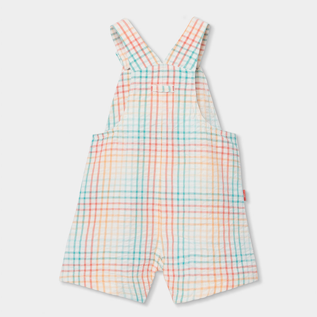 El peto de cuadros en tonos pastel aporta un estilo suave y alegre, perfecto para los primeros meses del bebé. En la parte frontal incluye divertidos dibujos de animales, un detalle que añade un toque tierno y especial al conjunto.