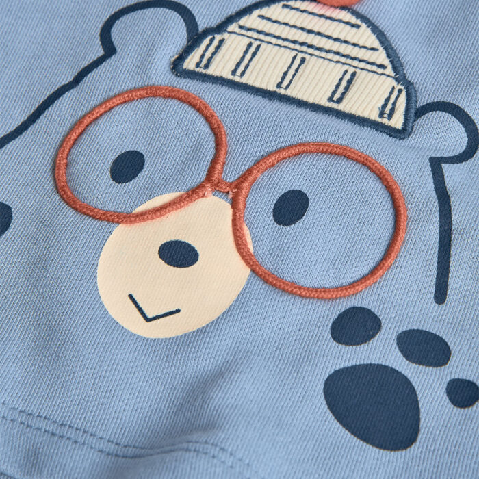 Este conjunto Boboli está confeccionado en tejido de punto de alta calidad. La sudadera en 100% algodón cuida la piel delicada del bebé, aportando suavidad y transpirabilidad. El pantalón mezcla algodón y poliéster, lo que añade resistencia y durabilidad. De esta forma, el conjunto mantiene su forma y suavidad incluso después de muchos lavados.