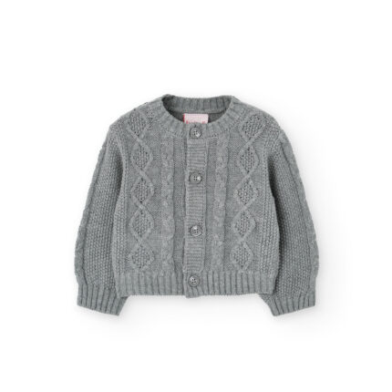 Chaqueta Boboli de punto tricotosa gris con trenzas para bebé