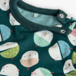 Este conjunto de punto verde para bebé con estampado de bellotas está confeccionado en 100% algodón de alta calidad. El tejido suave y transpirable protege la piel delicada del bebé y ofrece libertad de movimiento, permitiendo que los pequeños disfruten de cada momento, ya sea en casa, de paseo o en sus primeras aventuras. Además, la resistencia de sus fibras garantiza que la prenda conserve su forma y suavidad tras cada lavado.