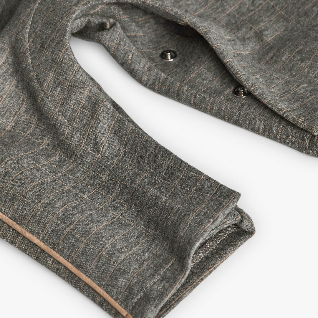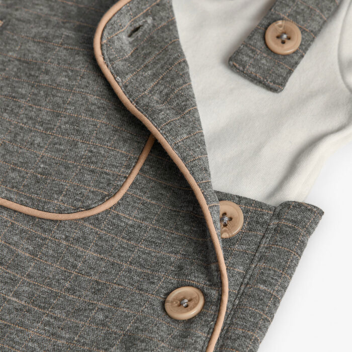 Su combinación de gris vigoré y blanco neutro permite coordinar fácilmente con accesorios y otras prendas de bebé, creando un conjunto completo, acogedor y encantador. Puedes combinarlo con gorritos, calcetines o zapatitos en tonos neutros para un look armonioso.
