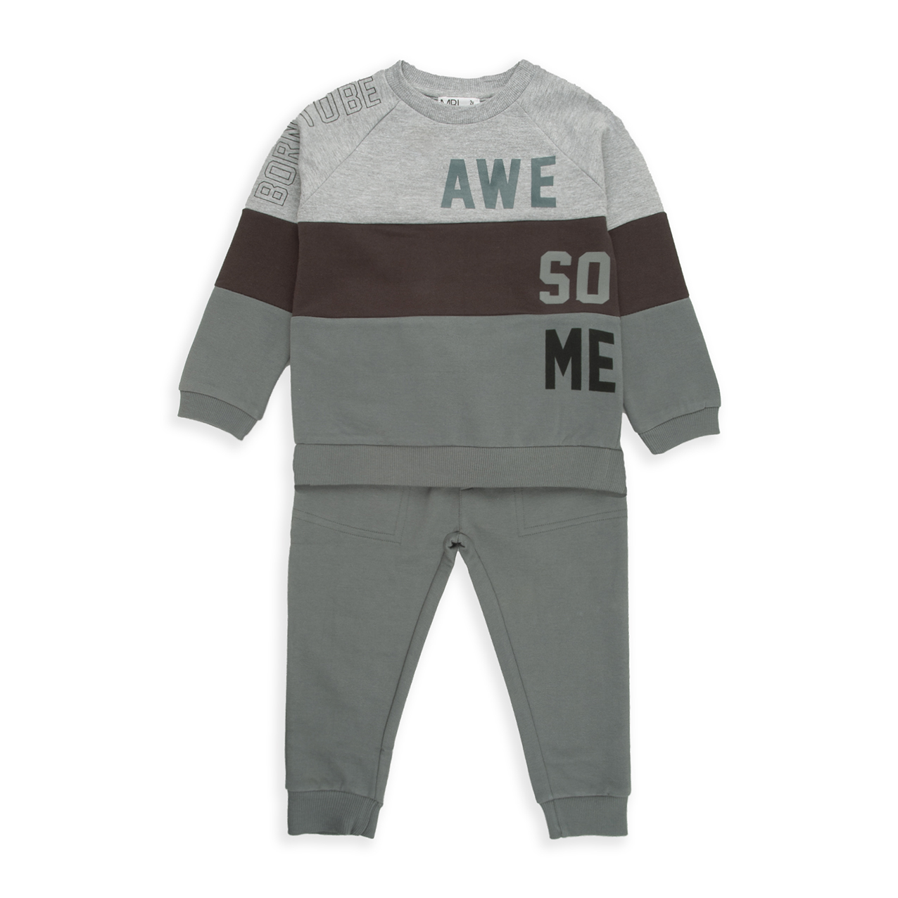 Este conjunto Babybol para niño une diseño moderno y funcionalidad, ideal para acompañarles tanto en el cole como en sus planes de fin de semana. Incluye una sudadera de algodón con un original diseño a rayas en tonos grises y azules y un divertido estampado delantero, aportando ese toque casual que tanto gusta. El pantalón largo en algodón liso de color gris con cintura elástica asegura máxima comodidad y ajuste perfecto durante todo el día.