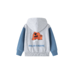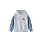 La sudadera con capucha destaca por su original combinación de colores: cuerpo en gris claro con mangas en azul celeste y un encantador estampado de perrito tanto en la parte delantera como en la trasera. Su diseño práctico y moderno la convierte en una prenda imprescindible para el día a día, aportando estilo sin renunciar a la comodidad.