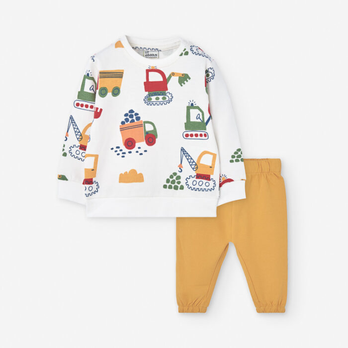 El conjunto Losan de sudadera tractores y pantalón para bebé niño es perfecto para acompañar a los más pequeños en sus aventuras del día a día con comodidad, estilo y diversión.