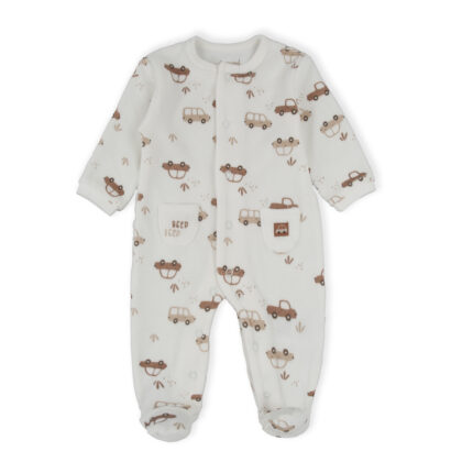 La sudadera de manga larga, confeccionada en algodón suave, presenta un encantador estampado de tractores sobre fondo blanco, aportando un toque alegre y lleno de personalidad. Su apertura en el hombro con automáticos facilita el cambio de ropa, ideal para los momentos en los que se necesita rapidez y practicidad.