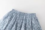 Su color azul claro de fondo aporta luminosidad y combina fácilmente con camisetas, blusas o sudaderas, mientras que el estampado total de pequeñas florecitas blancas aporta un toque alegre, delicado y moderno. La cintura elástica garantiza un ajuste cómodo y adaptable, ideal para jugar, correr y disfrutar de su día a día con libertad.