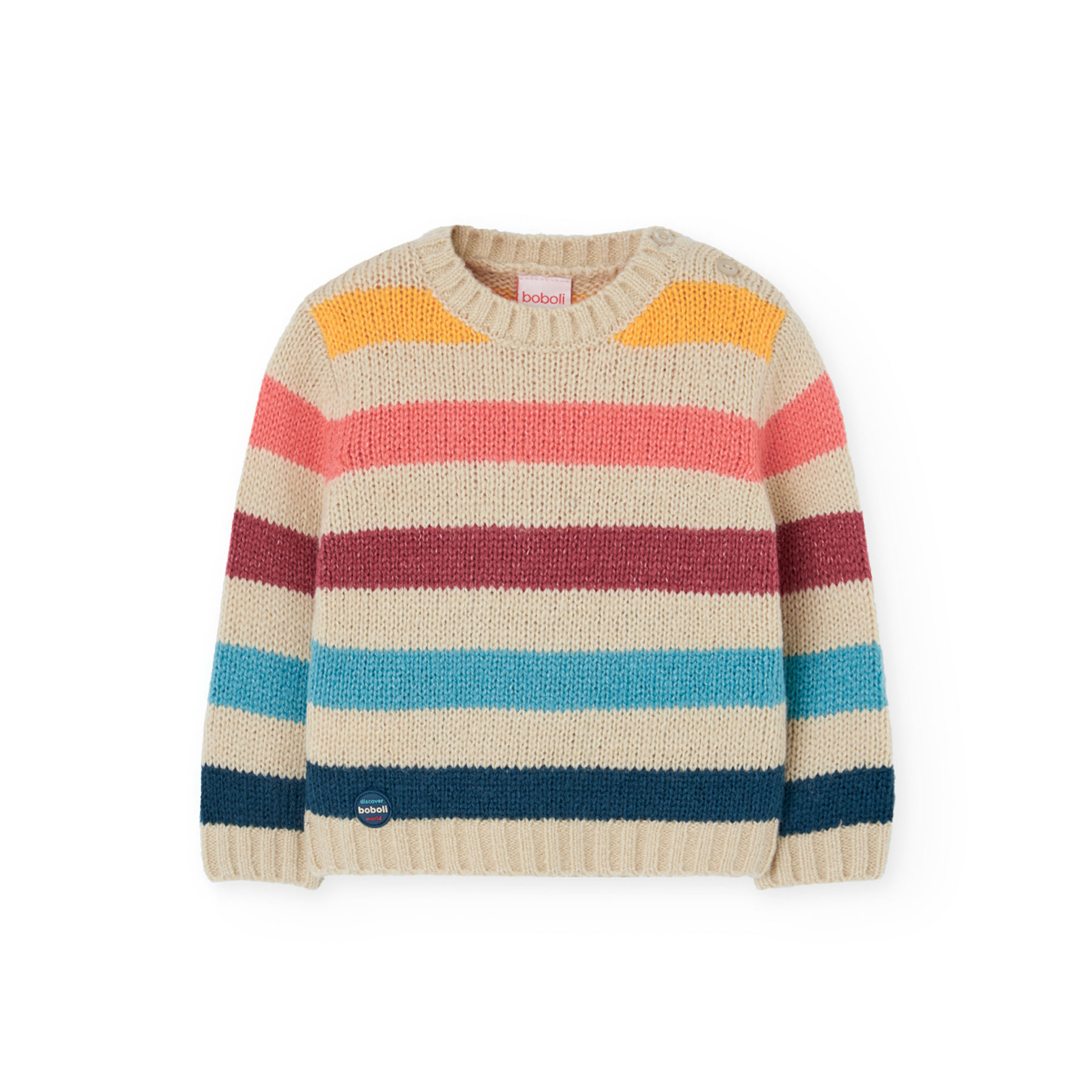 Inicio Infantil Ellos Jerséis Invierno Jersey Boboli de punto a rayas beige para niño