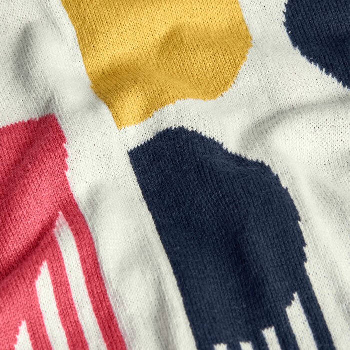 Este jersey de punto blanco para niña es la prenda ideal para añadir calidez, dulzura y estilo al armario infantil en los meses de otoño e invierno. Su encantadora decoración de corazones multicolor aporta un aire alegre y divertido, perfecto para acompañar a tu pequeña en cualquier ocasión.