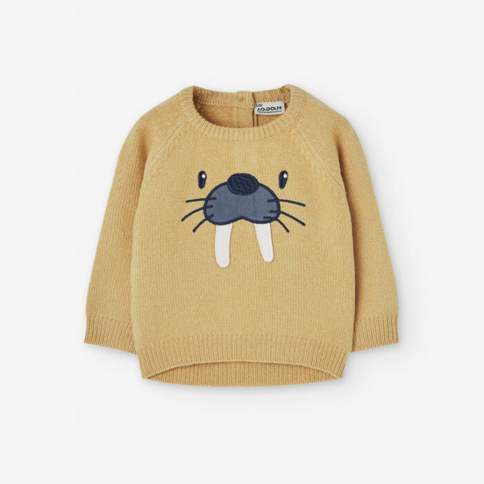 Su diseño estampado con una simpática foca en el delantero añade un toque divertido y moderno, mientras que la apertura en la espalda con botones facilita el momento de vestirlo sin complicaciones. El color mostaza cálido combina fácilmente con pantalones, leggins o jeans para crear looks adorables y prácticos.