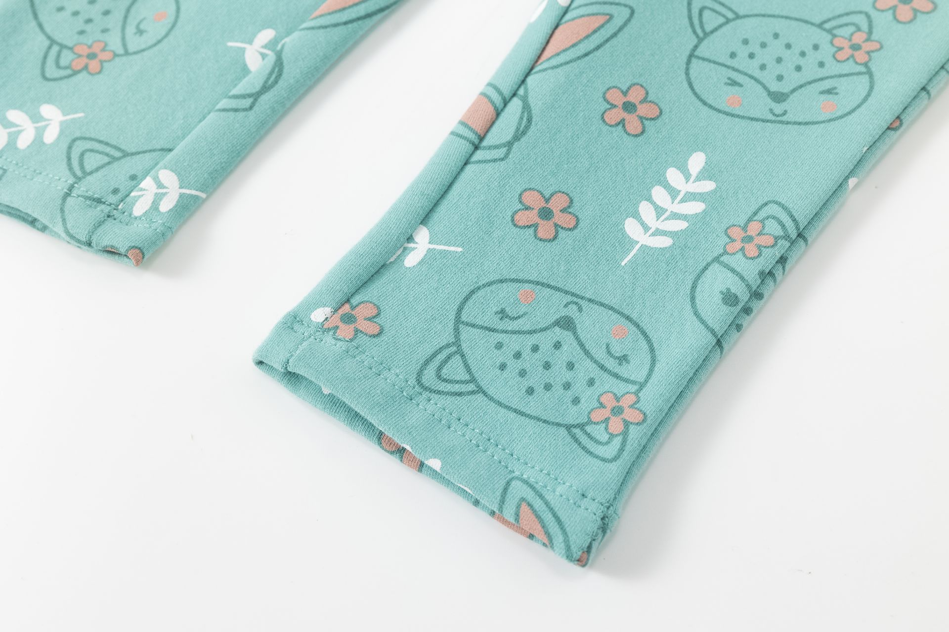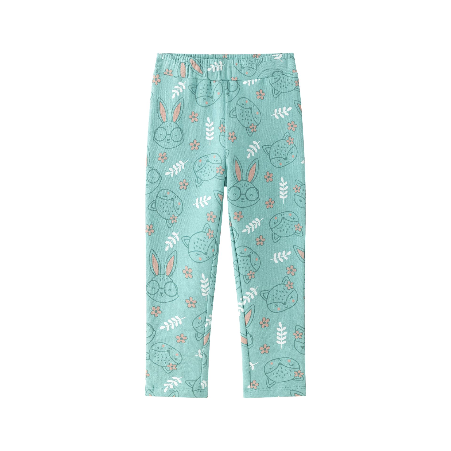 Inicio Infantil Ellas Pantalones Invierno Leggin Newness con conejitos y búhos en verde para niña