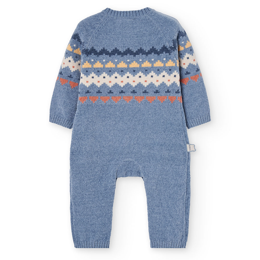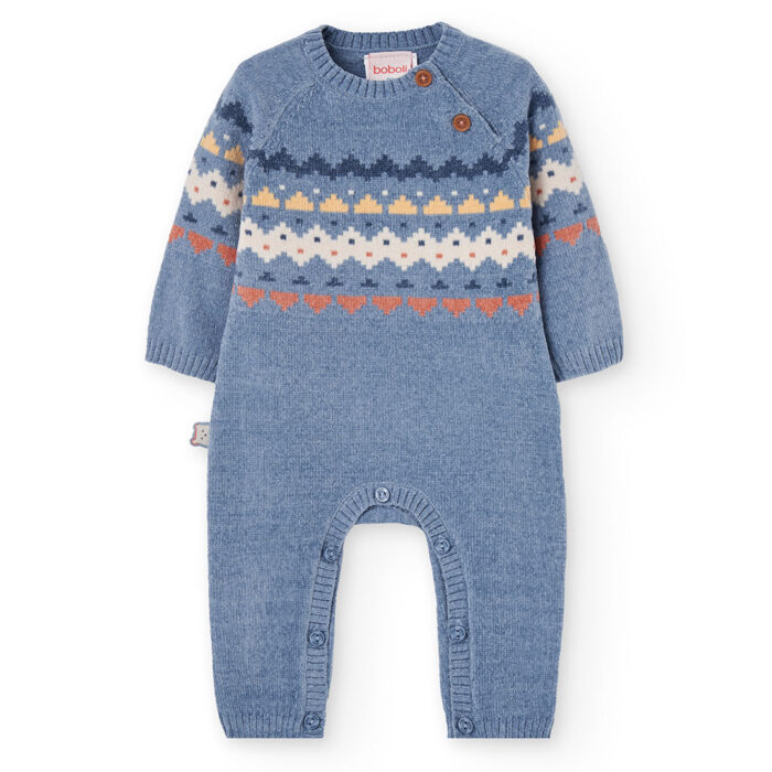 El pelele de punto para recién nacido en color azul. Es la prenda perfecta para los meses de frío, combinando abrigo, suavidad y estilo en una sola pieza. Su diseño con jacquard en varios colores aporta un toque elegante y moderno, convirtiéndolo en una opción versátil para el día a día o para ocasiones especiales.