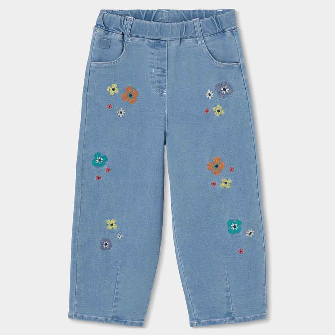 Pantalón Boboli denim bleach para niña con bordados de flores