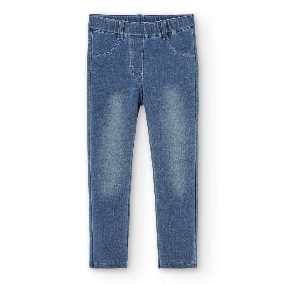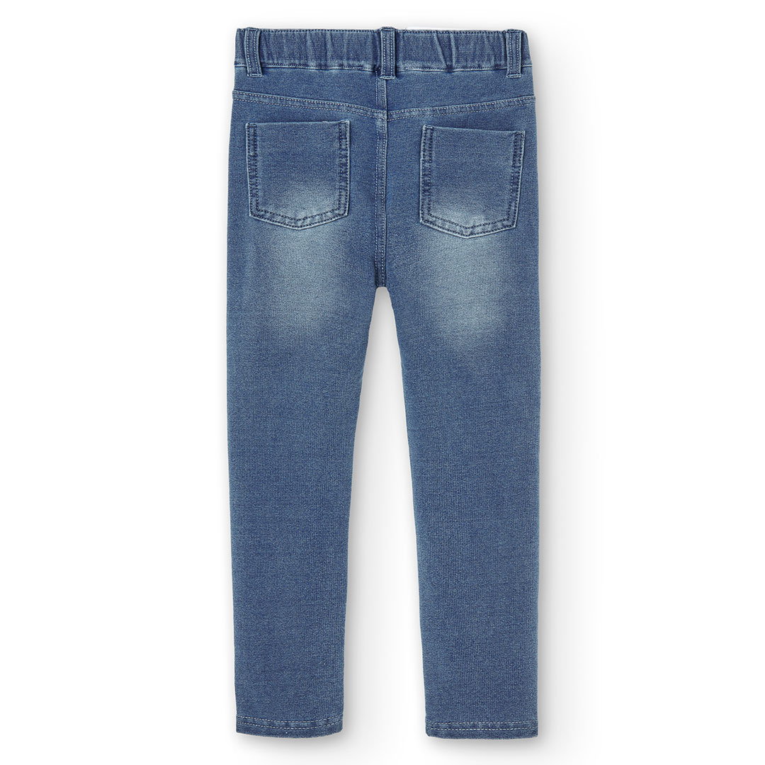 Pantalón de felpa denim para niña color azul claro y negr0
