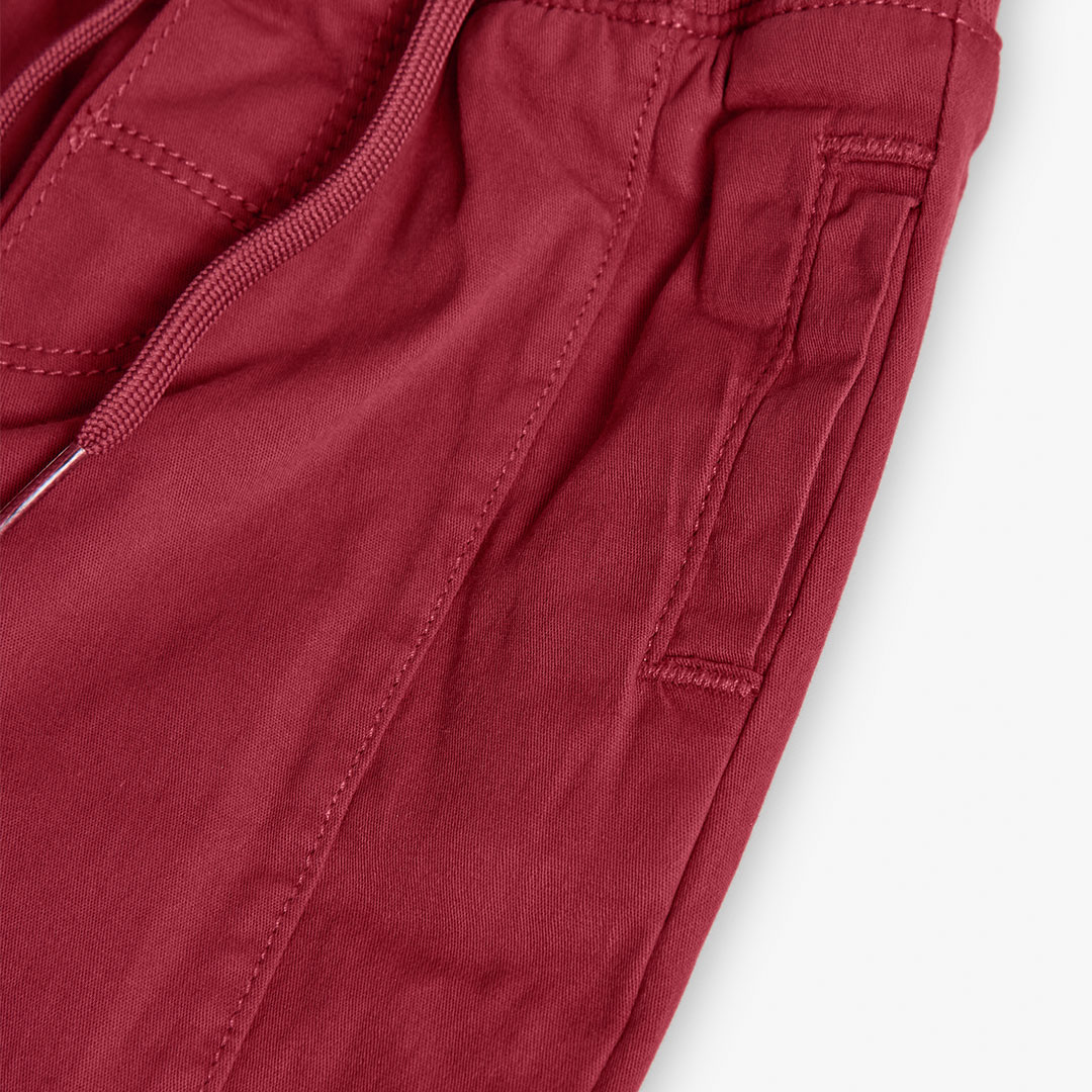 En Diana 23 & 23 Volteretas seleccionamos cada prenda pensando en comodidad, estilo y durabilidad. Este pantalón de algodón elástico granate es una elección práctica y elegante para que tu hijo disfrute del día a día con total libertad y estilo.