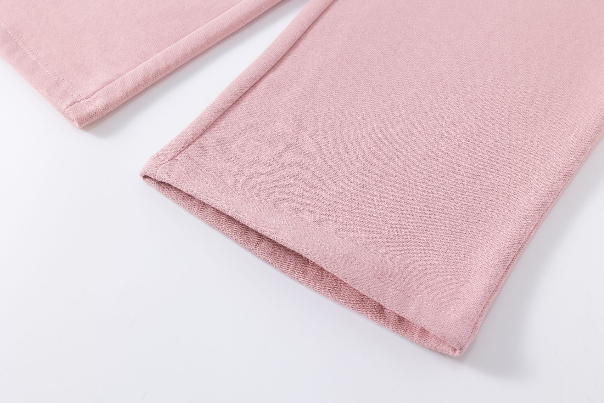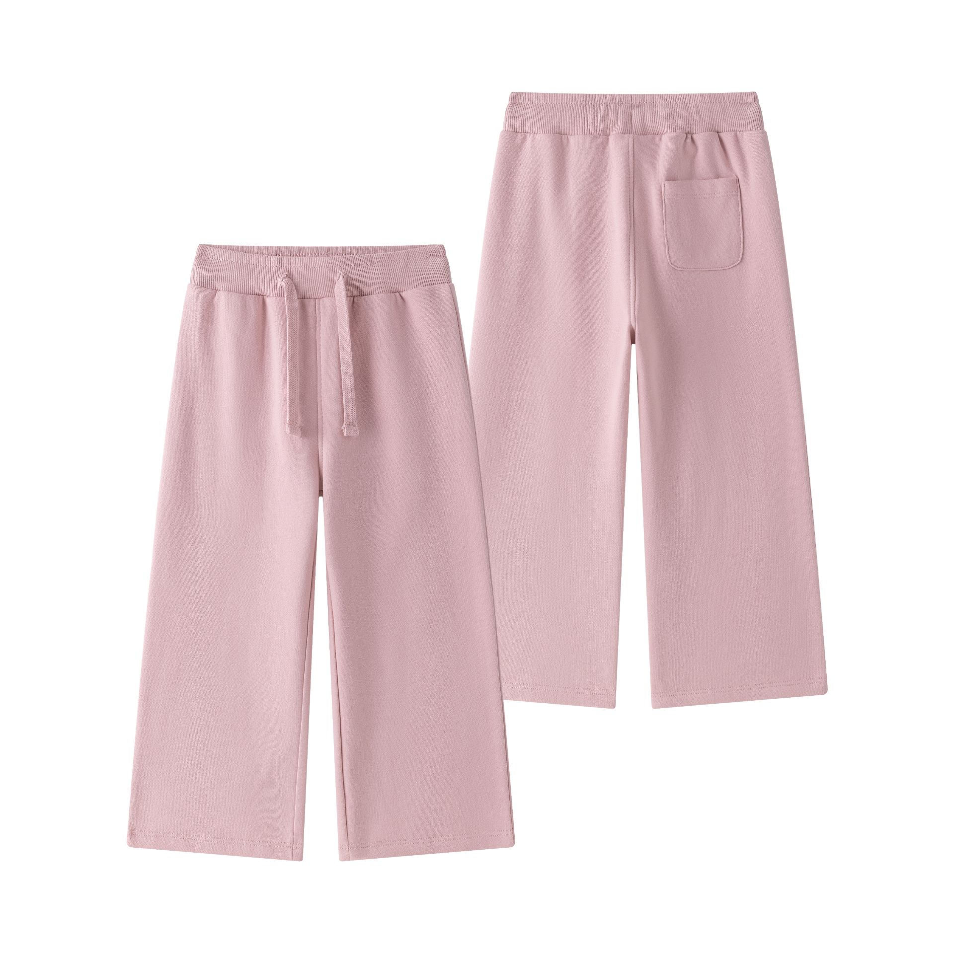 Su diseño ancho y liso aporta un aire moderno y desenfadado, mientras que la cintura elástica garantiza un ajuste cómodo y práctico para que se vista con facilidad. El tono rosa suave le da un toque dulce y versátil, perfecto para combinar con camisetas estampadas, blusas o sudaderas.