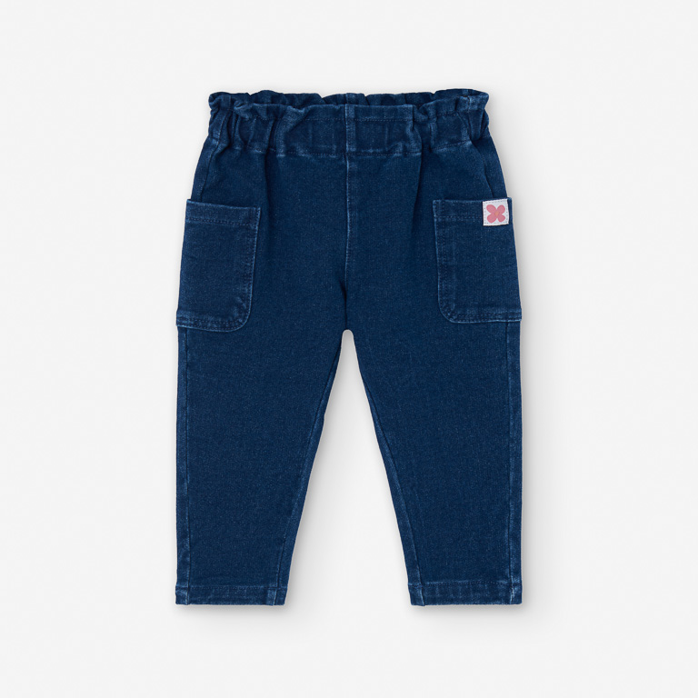El pantalón Losan en denim azul para bebé niña combina comodidad, estilo y practicidad para el día a día de las más pequeñas.