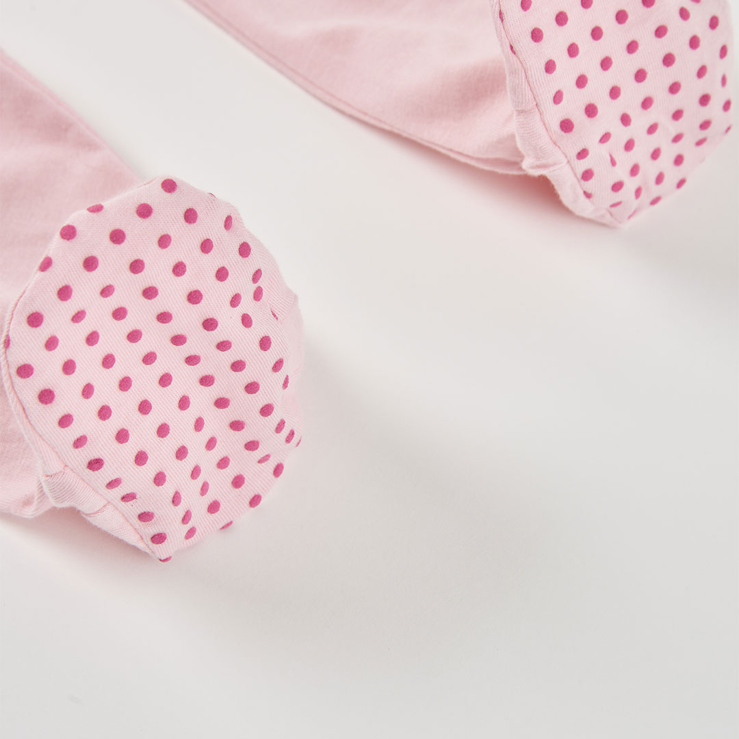 Su bonito color rosa aporta un aire dulce y femenino, mientras que el diseño de flores y hojas añade un toque encantador y cuidado al detalle. Las mangas largas y los pies cubiertos ayudan a mantener a tu pequeña abrigada, convirtiéndolo en una opción ideal para entretiempo o días más frescos.