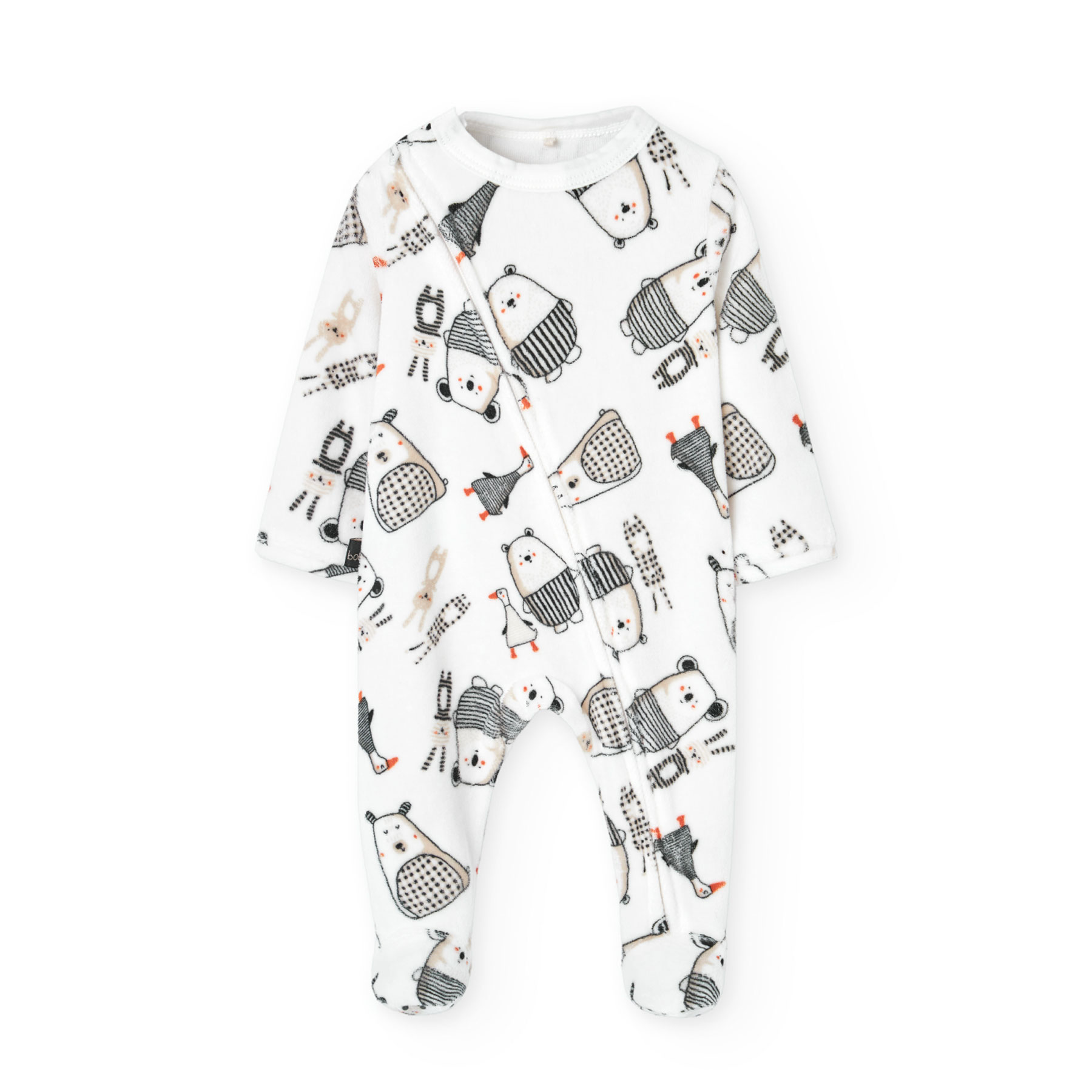 El pelele de punto en color blanco para bebé es una prenda imprescindible para los meses de invierno. Su delicado estampado de animales añade un toque tierno y encantador que enamora a grandes y pequeños, mientras que su tejido suave de algodón y poliéster garantiza abrigo y comodidad durante todo el día.
