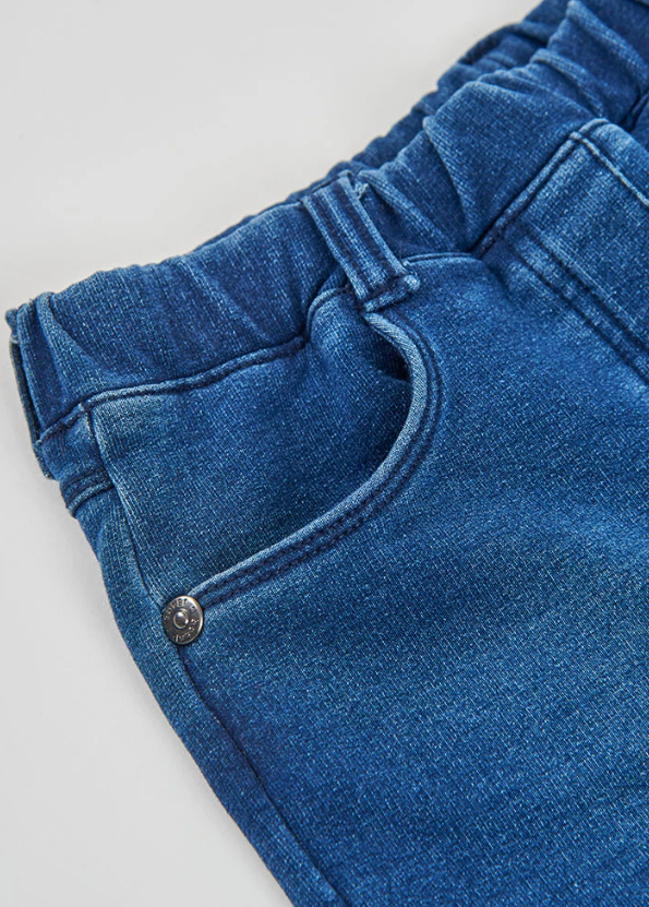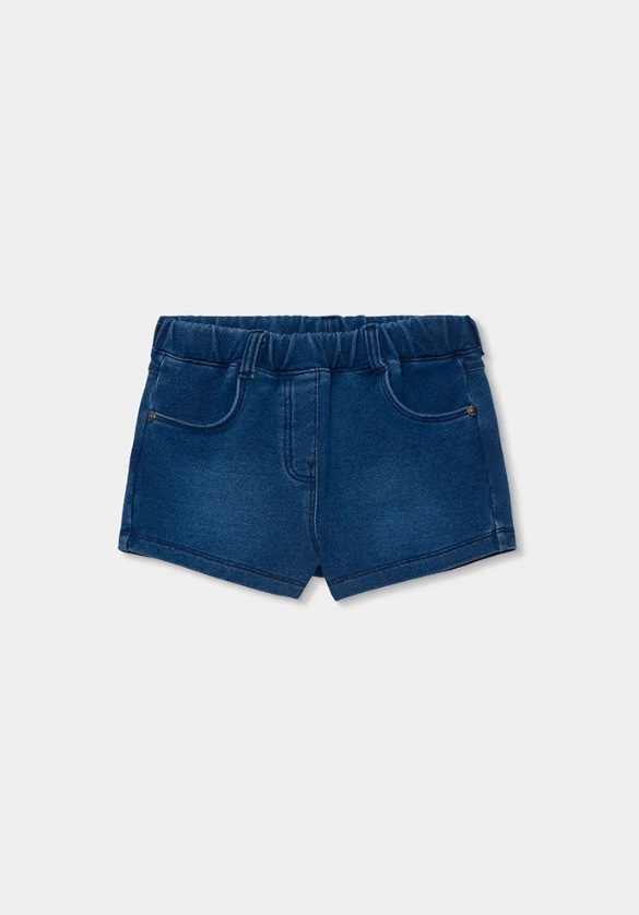 Este pantalón corto de felpa denim para niña combina el estilo del clásico vaquero con la comodidad que necesitan las más pequeñas en su día a día. Su color azul bleach, azul oscuro o negro con efecto vaquero aporta un aire moderno y versátil, perfecto para crear looks casuales llenos de estilo.