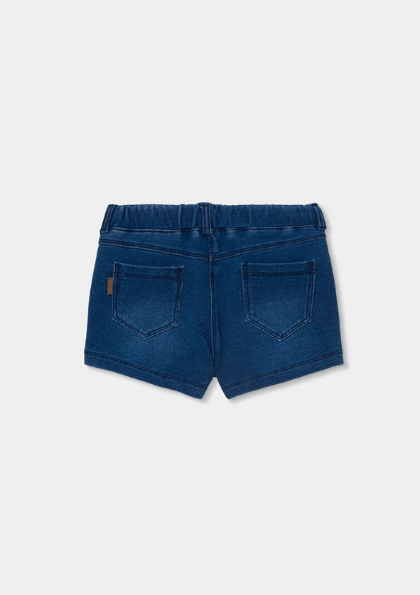 Short de felpa denim para niña color azul claro y negr0