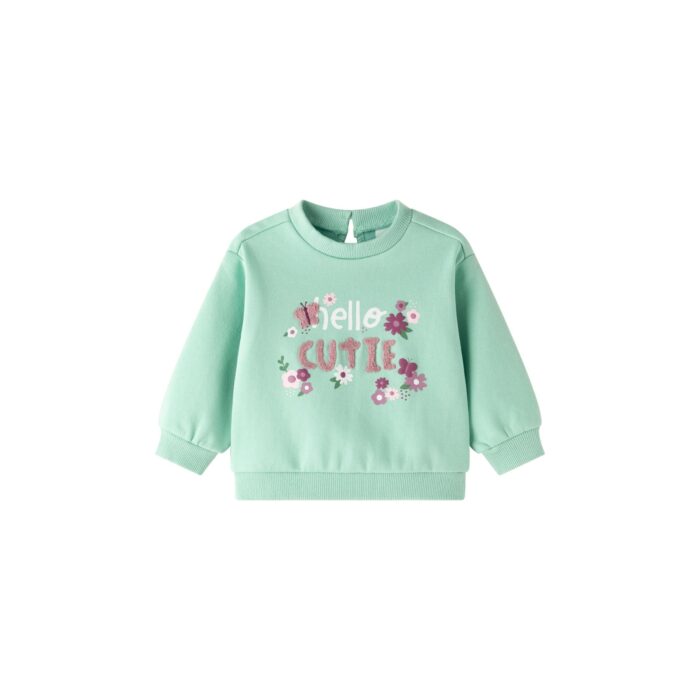 La sudadera Newness flores en verde claro para bebé niño es una prenda adorable, cómoda y práctica, perfecta para los primeros looks del bebé. Su estampado delantero de flores sobre fondo verde claro aporta un toque alegre y delicado, convirtiéndola en una pieza esencial en el armario infantil.