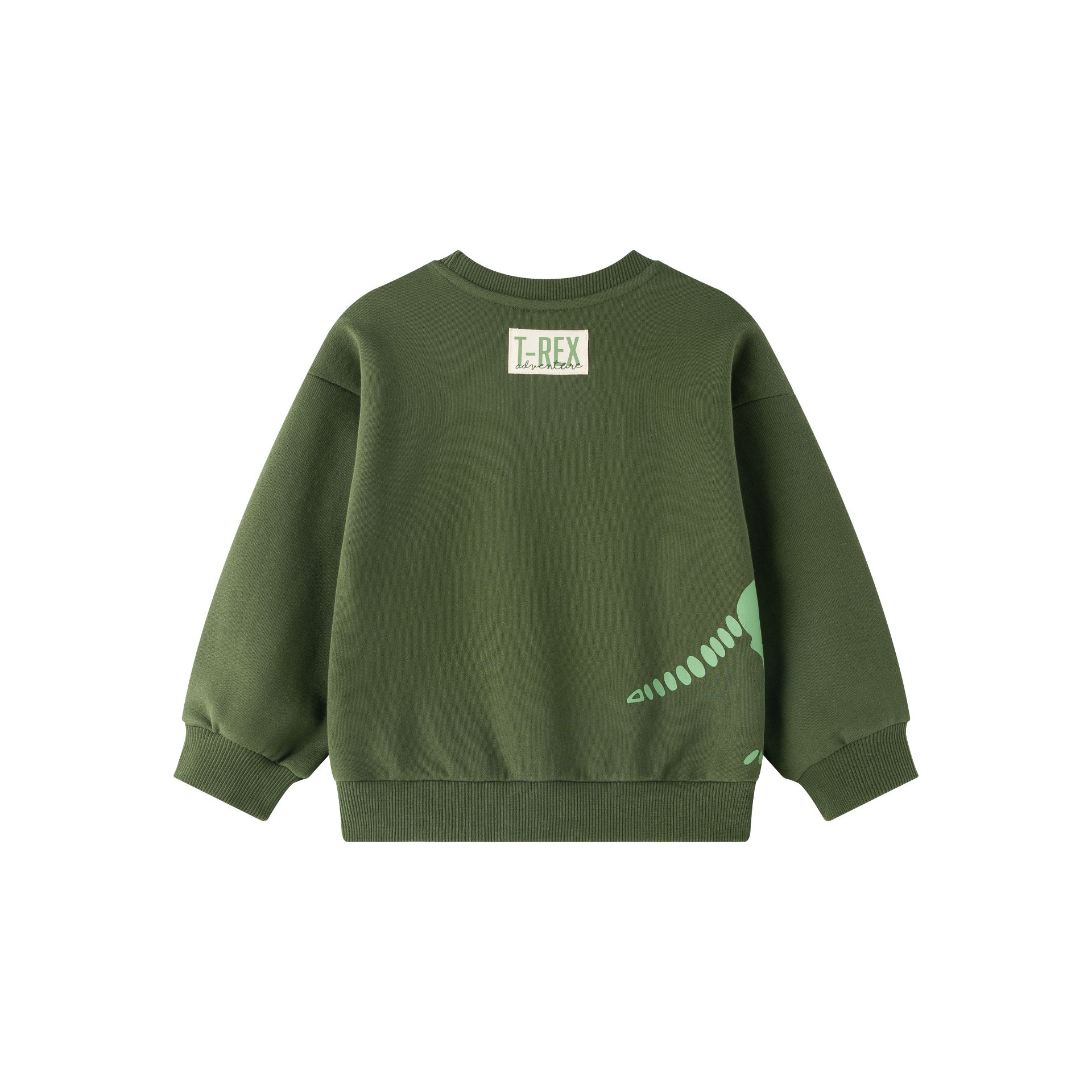 La Sudadera Newness dinosaurio en verde para niño es una prenda imprescindible para esta temporada. Confeccionada en algodón suave y cálido, ofrece máxima comodidad y libertad de movimiento, ideal para el día a día de los más pequeños. Su diseño de manga larga sin capucha, con estampado delantero de dinosaurio sobre un fondo en color verde oliva, aporta un toque divertido y moderno perfecto para los niños que adoran la aventura.