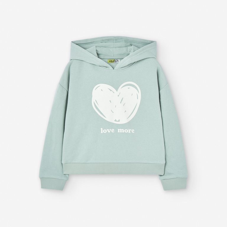 💚 Sudadera Losan con capucha y corazón en verde para niña
