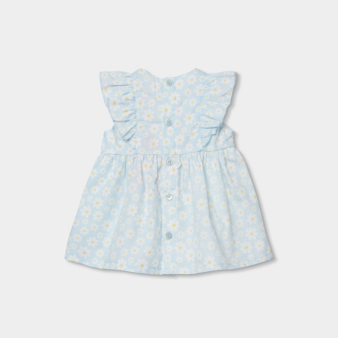 Vestido de popelín azul claro para bebé niña con estampado floral