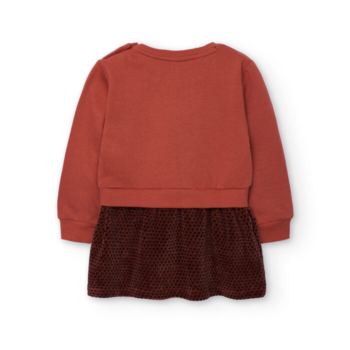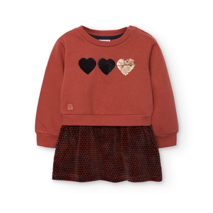 El vestido para niña en color naranja con corazones es una prenda alegre y cómoda, ideal para la temporada de otoño e invierno. Diseñado para aportar calidez sin perder ligereza, se convertirá en una de las piezas favoritas del armario de tu pequeña.